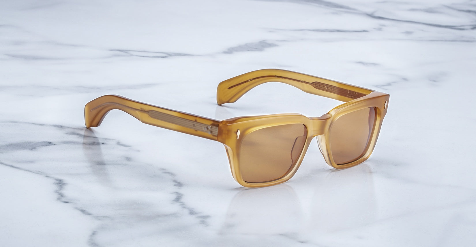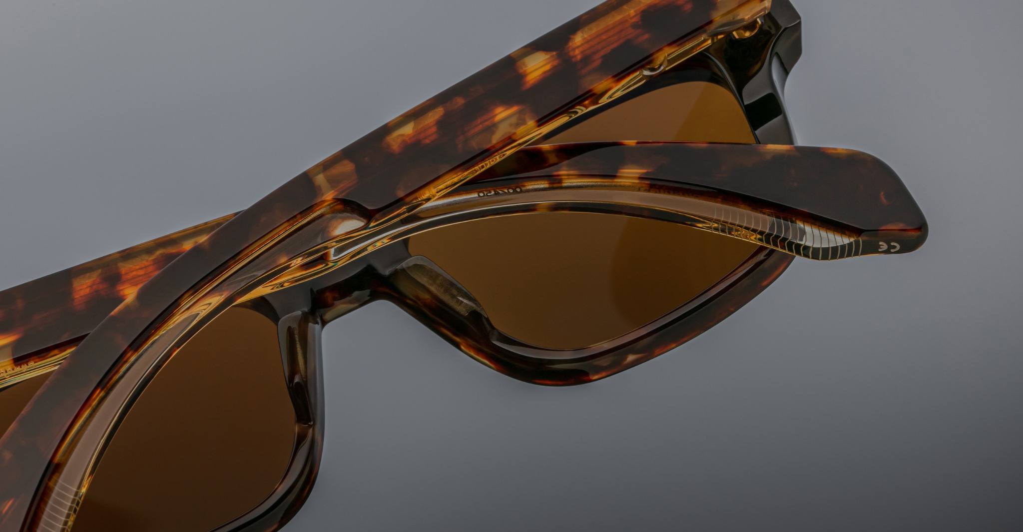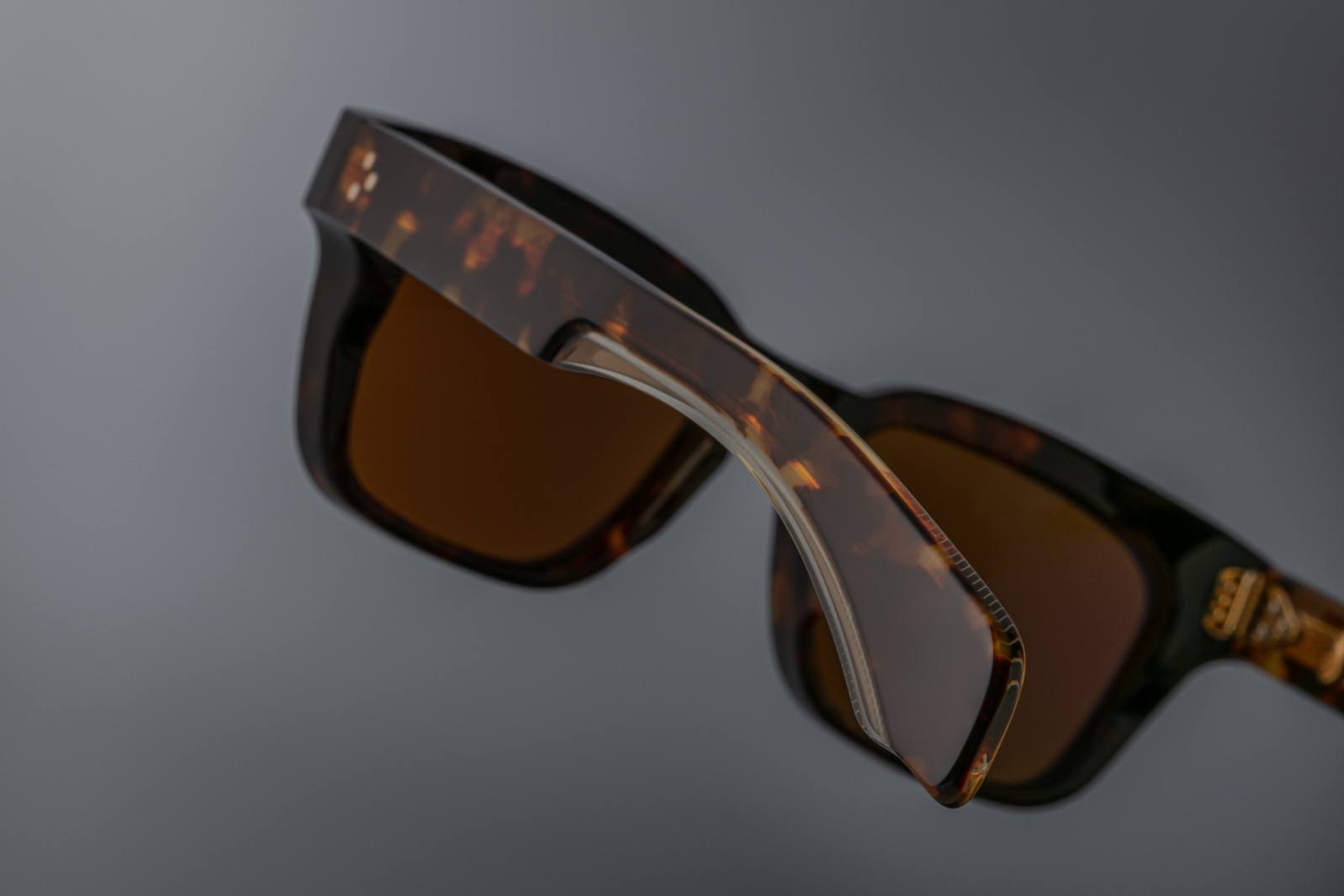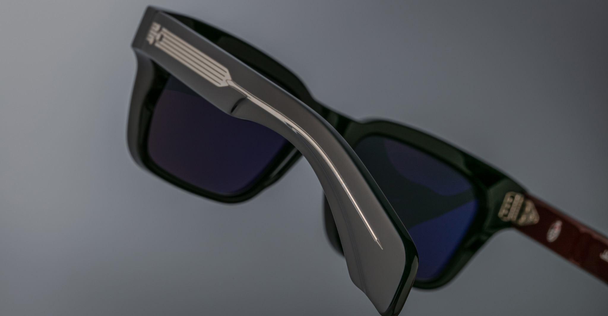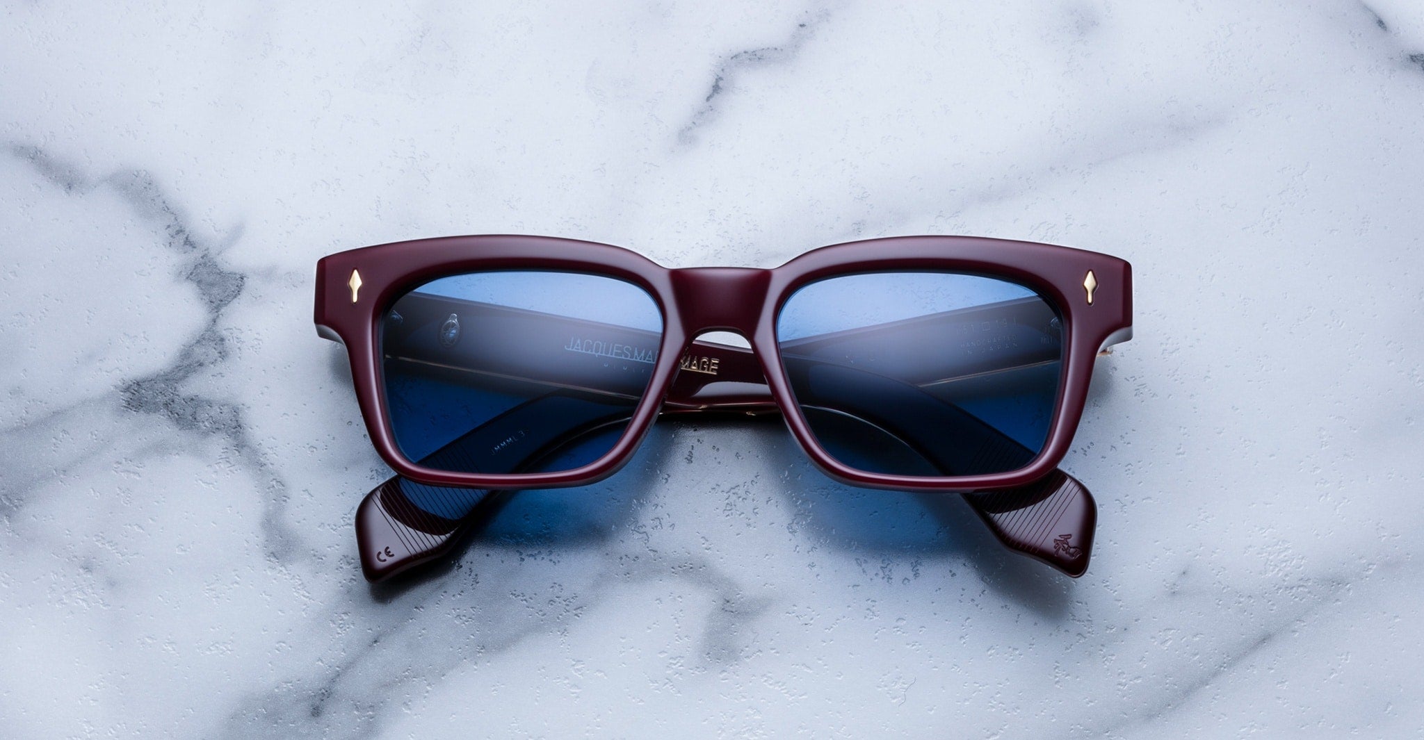 The Jacques Marie Mage Molino is a bold, wide rectangular sunglass inspired by 1960s design. It has a strong shape with sharp angles and fine bevel details, made from thick 10mm acetate. The temples are custom double-laminated and include special metal parts. This frame is named after Italian architect Carlo Mollino, known for his creative and artistic style.