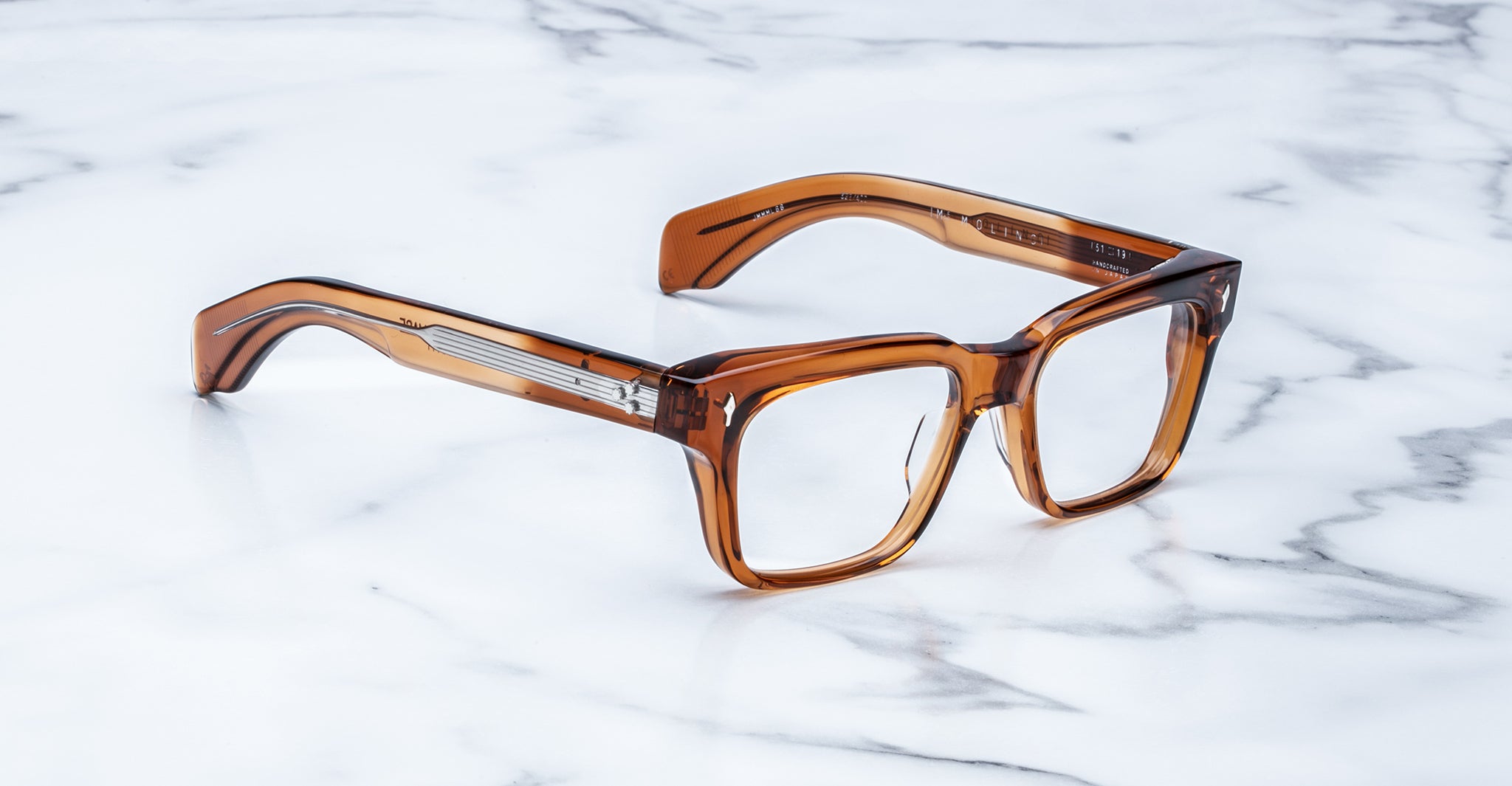 Named after Carlo Molino, one of the great architects and designers of the 20th century, the Jacques Marie Mage Molino's decisive rectangular shape emulates the acclaimed Italian’s flair for poetic angularity, while the spectacle’s solid construction and subtle bevel detailing reflect his astute mix of sensuality and balance.
