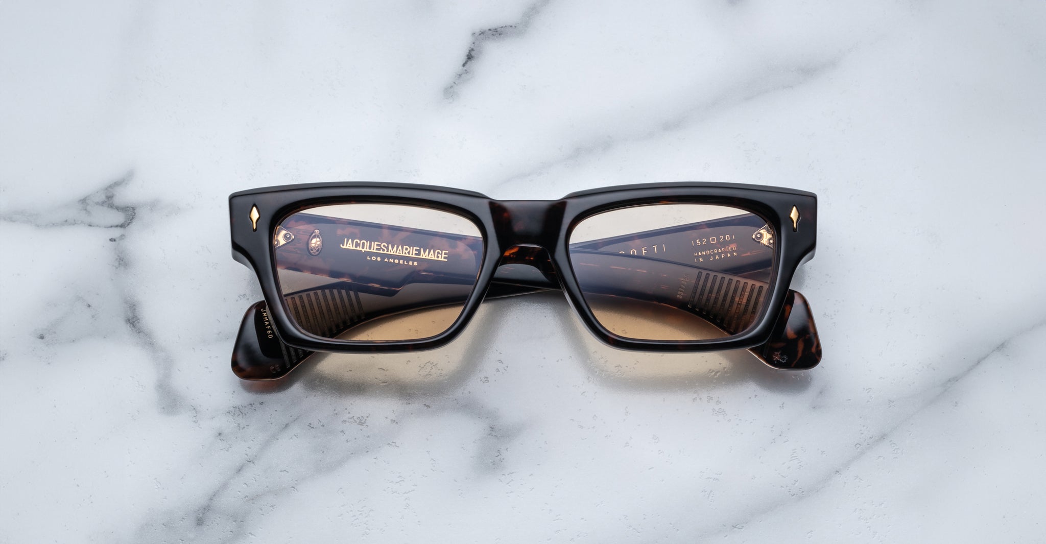 With Jacques Marie Mage’s Ashcroft sunglasses, you can break your mold with this winning composition of impeccable lines and poetic reliefs. The Ashcroft is a rectangular rock-and-roller frame with sharp lines and sculptural temples crafted from fine acetate. It is an urban hymn full of bright chords emanating from across the pond. These limited edition glasses are a grandiose toast to the bittersweet symphonies of the Nineties.