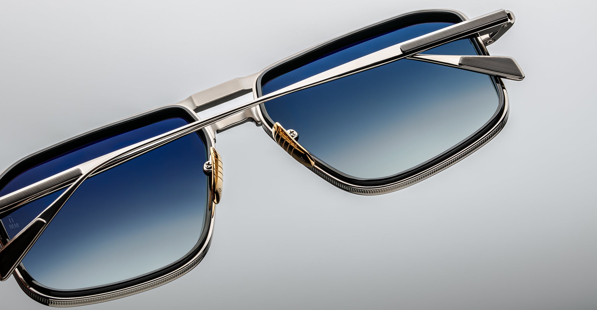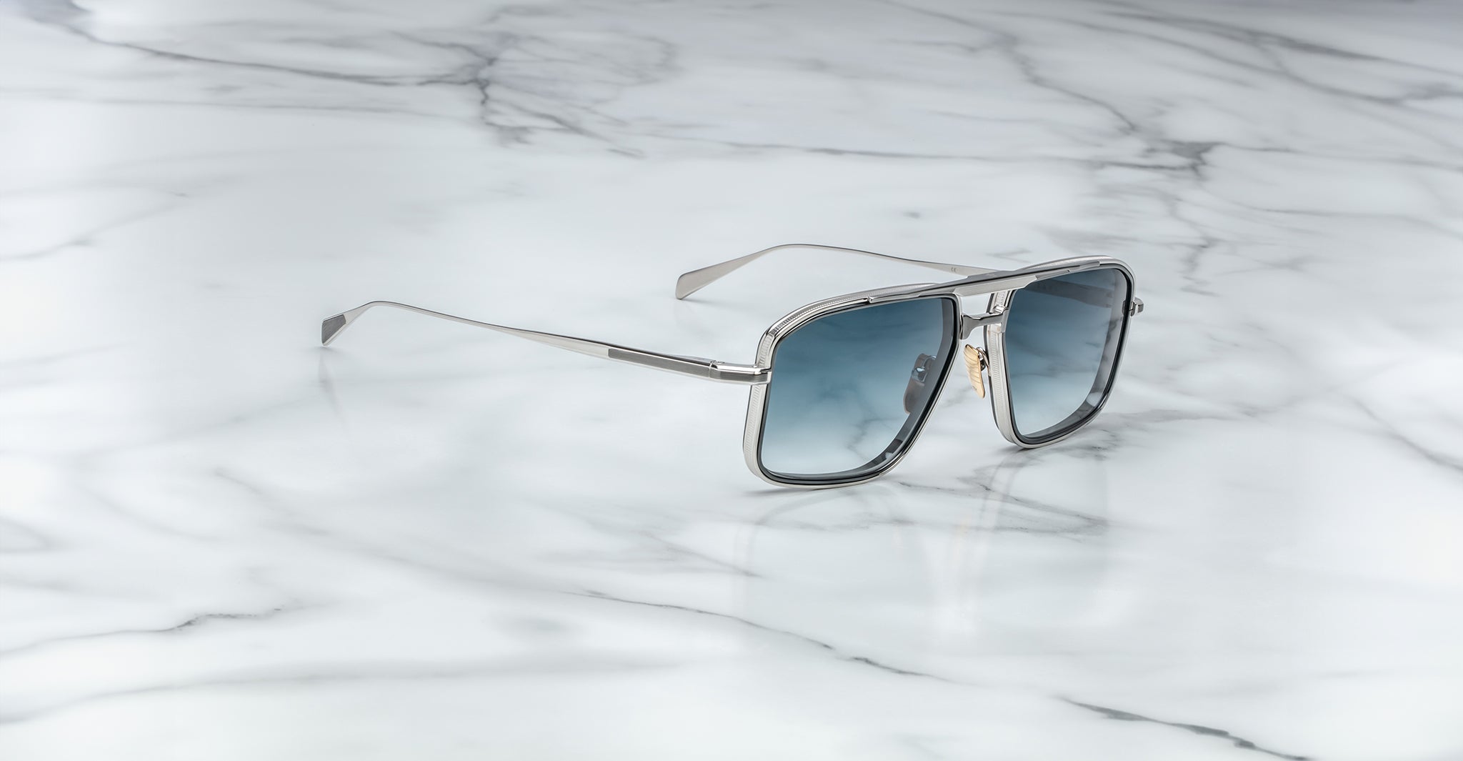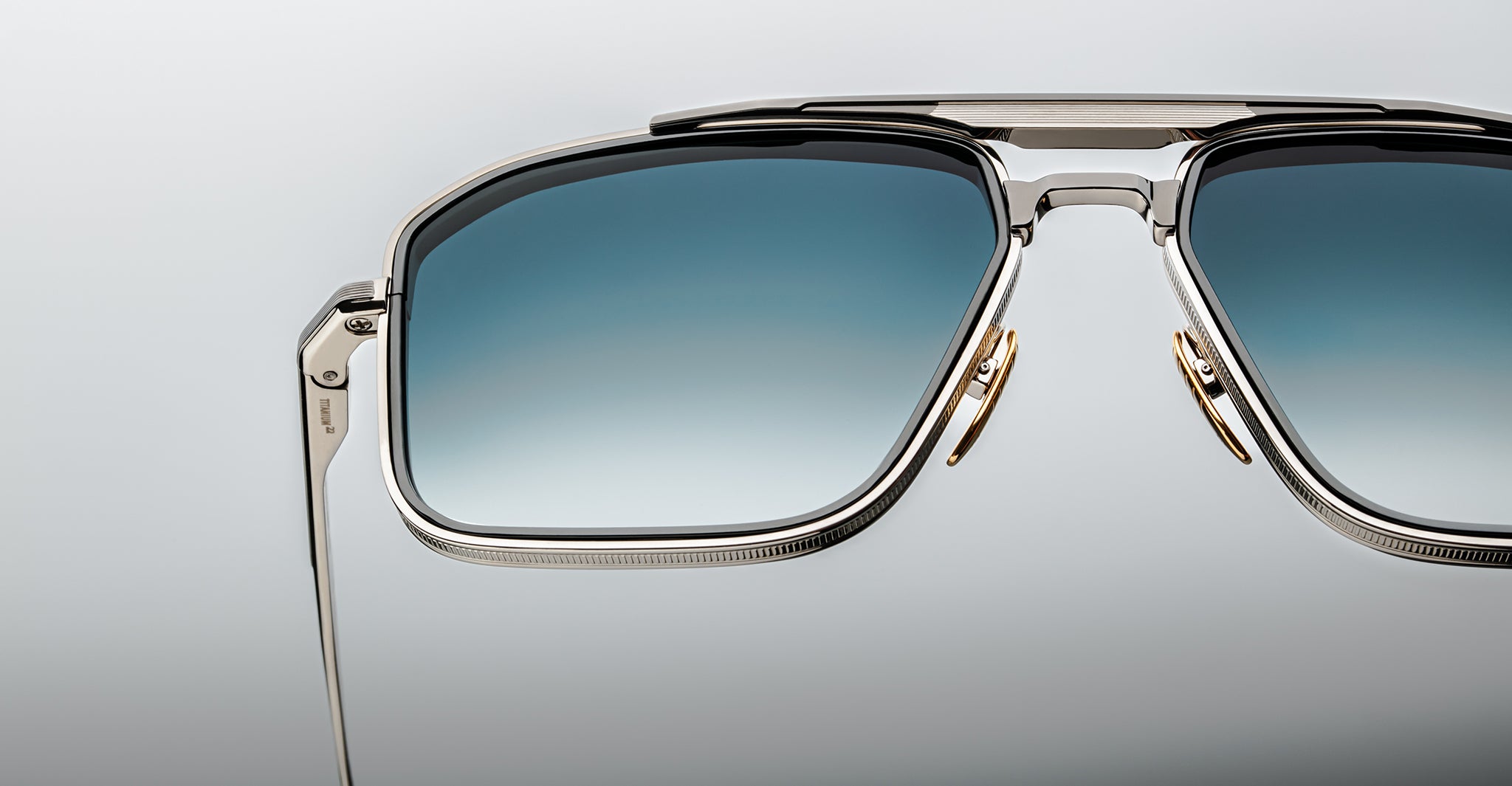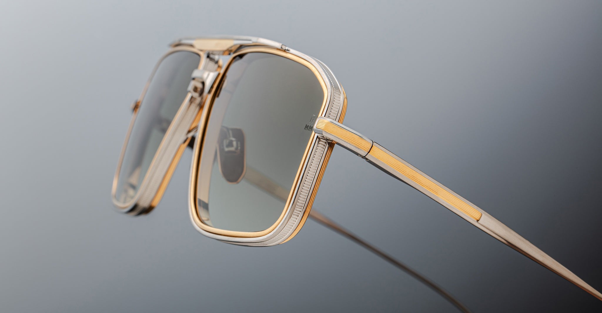 Earl is a sleek 70s-inspired titanium navigator sunglass with unique 4mm titanium lens rim inserts and dual-tone brow and temple details with JMM's signature Art Deco embellishments.