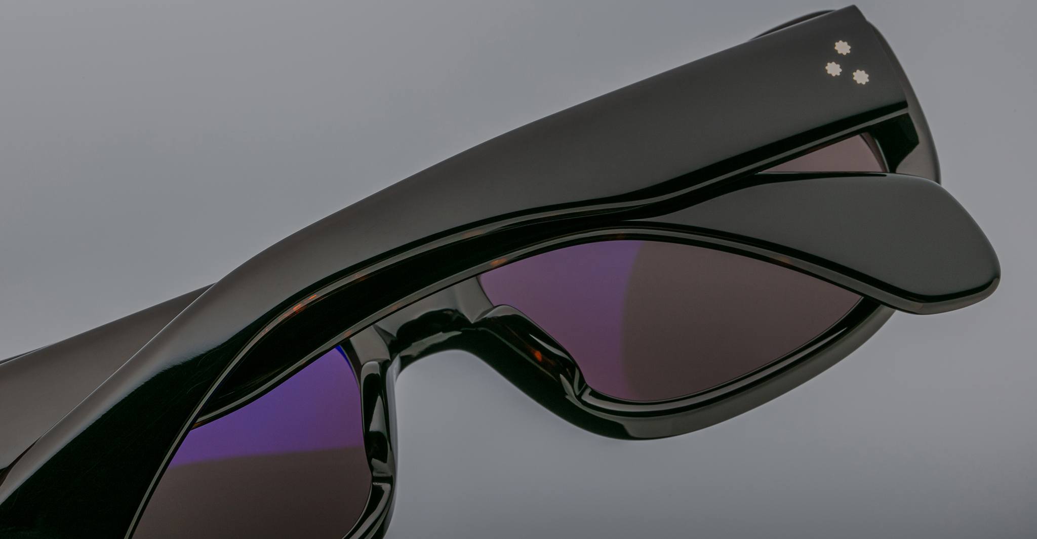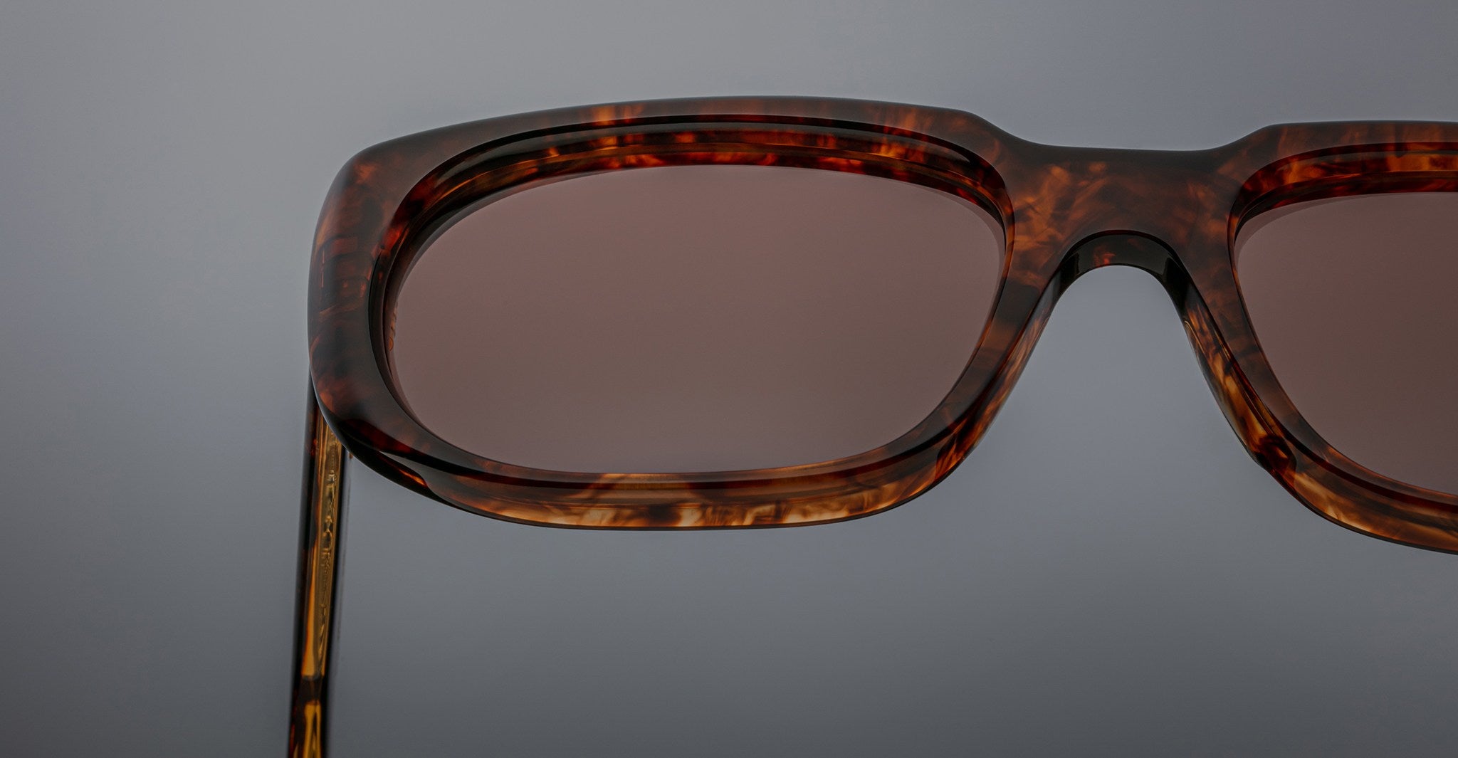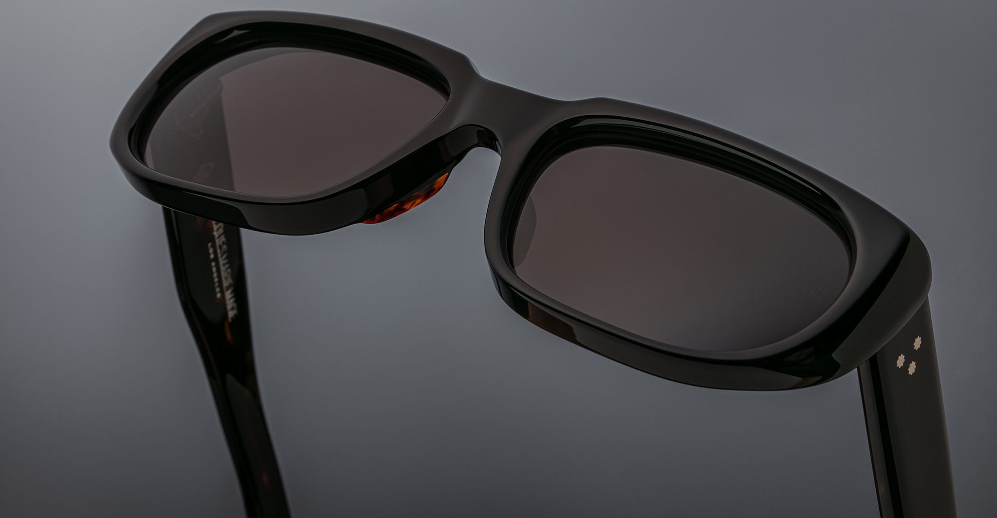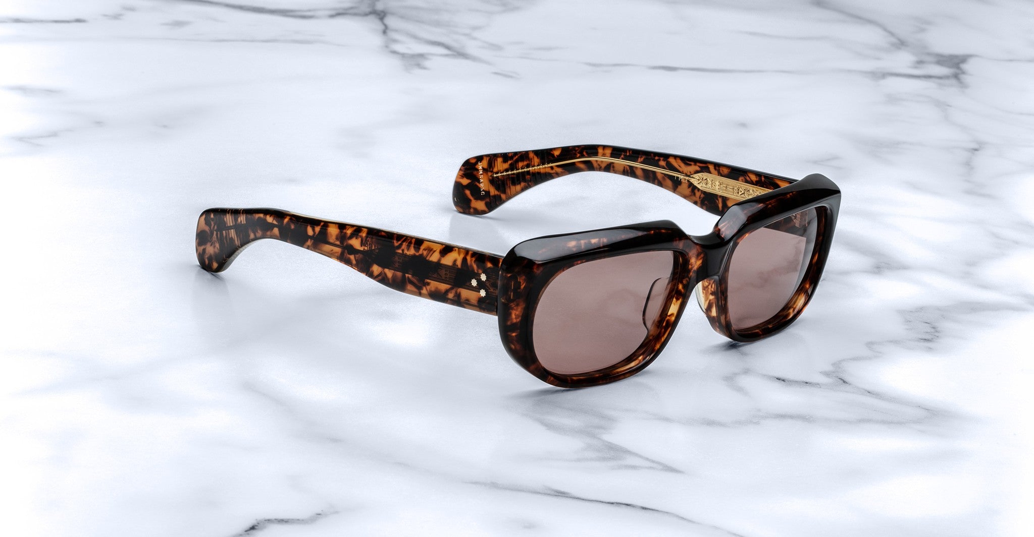 Jacques Marie Mage’s Sartet sunglasses are handcrafted in acetate with the stuff of ambition and glory. It is an astute and elegant rectangular frame with soft volumes and a modest wrap-around effect. The precious metal exposed wirecore displays Native American-inspired designs. Ensure your international reputation with these limited-edition glasses that represent a true study of character and an exploration of the soft but assured gestures of formal expression of cinematic moments.