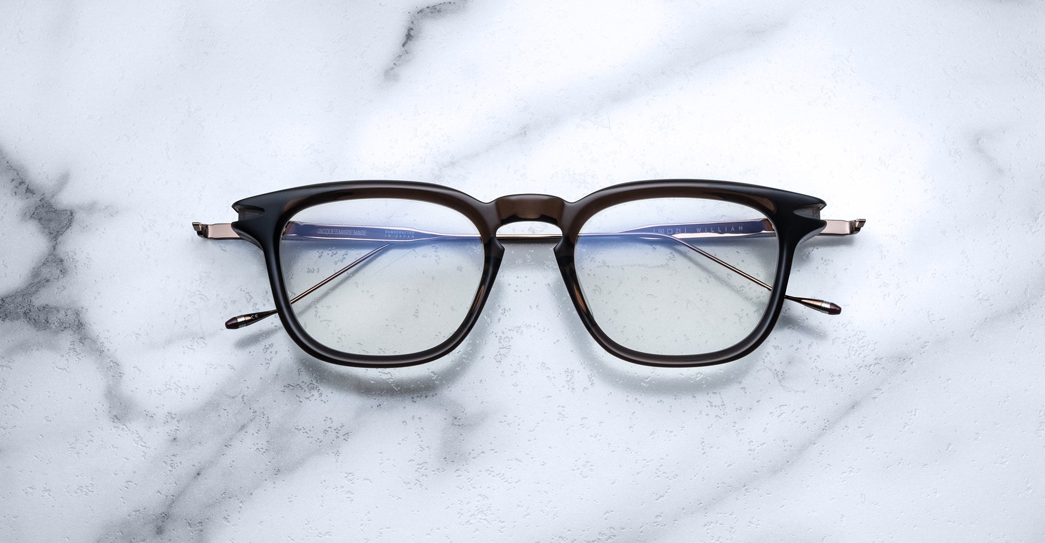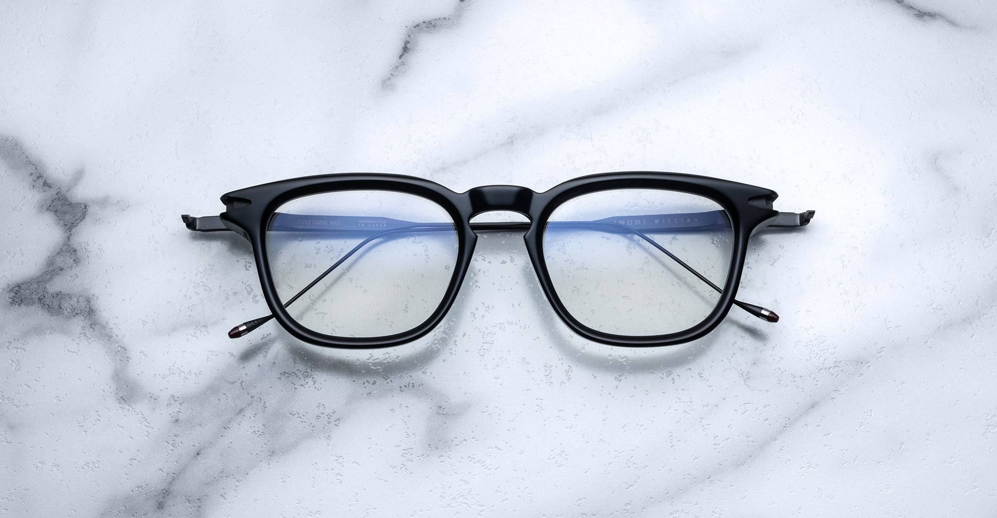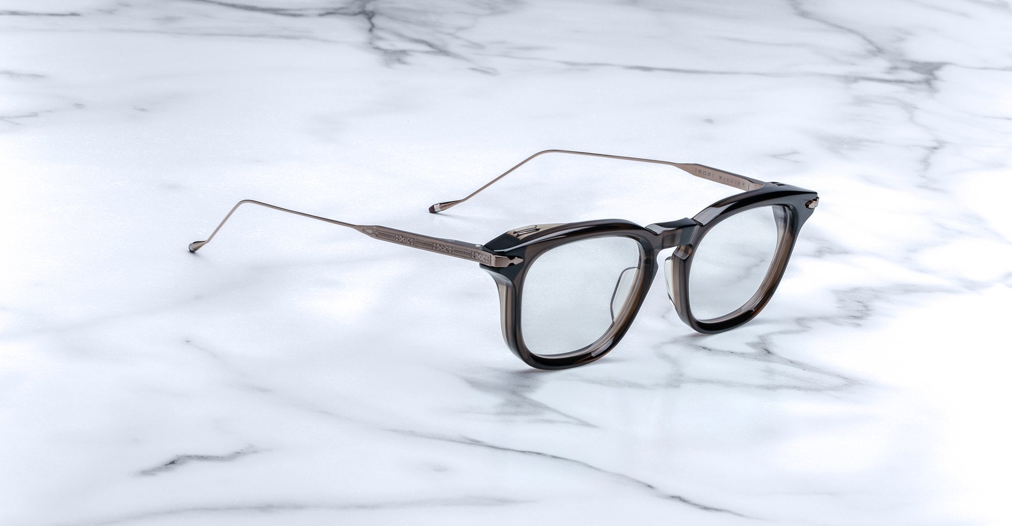 The William is a classic optical frame that is part of the VU Collection. It has a soft, angular shape that looks sharp but feels easy to wear. This frame uses JMM’s special hinge design, with front pins that move smoothly with the hinge for extra detail. The temples are made from strong titanium and feature filigree art inspired by Native American patterns. The tips of the temples have an updated shape with JMM’s signature epoxy detail. Each pair is handmade with care and is perfect for those who like eyewear that feels classic but special.