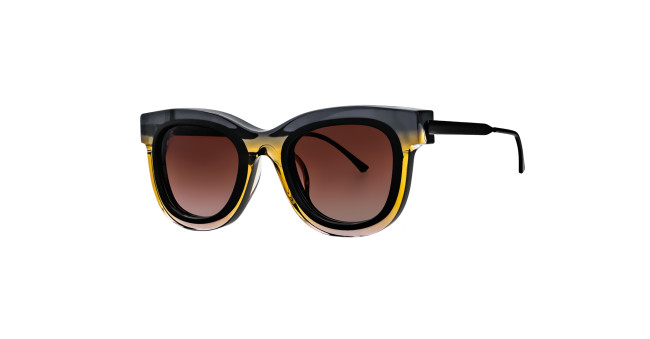 Flat fronts give a futuristic twist to traditional shapes. Layered acetate blocks are inspired by sculpture more than traditional eyewear making techniques. Thierry Lasry sunglasses and opticals features clear lines, surprising color and no outside logos.
