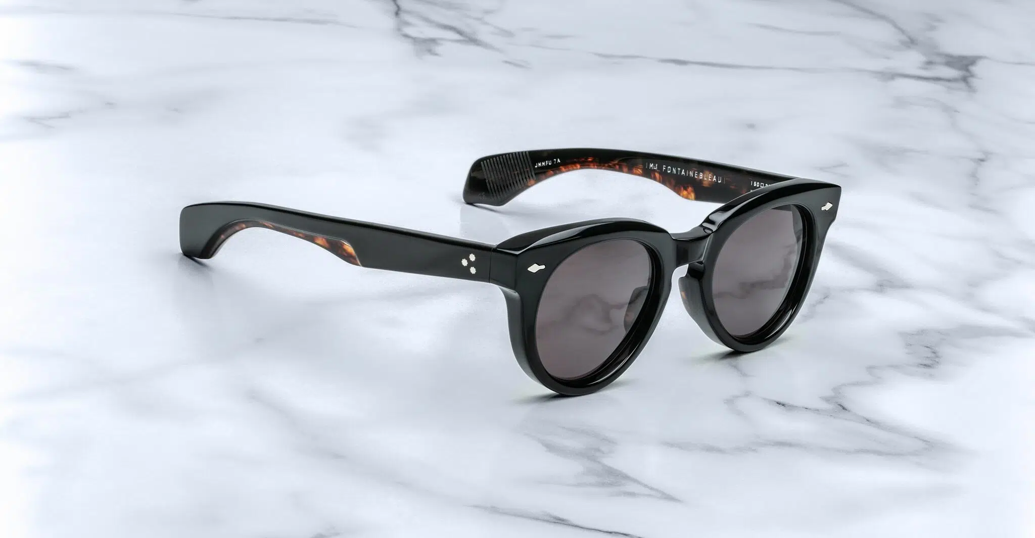 The Fontainebleau 2 is a return of the original Fontainebleau from Jacques Marie Mage’s debut season. These limited-edition spectacles represent a renaissance of unique influences that combine a softer lens in a Panto shape, keyhole bridge, and sculptural flourishes to create a dynamic sense of self-assured sophistication. It is a well-balanced unisex frame.