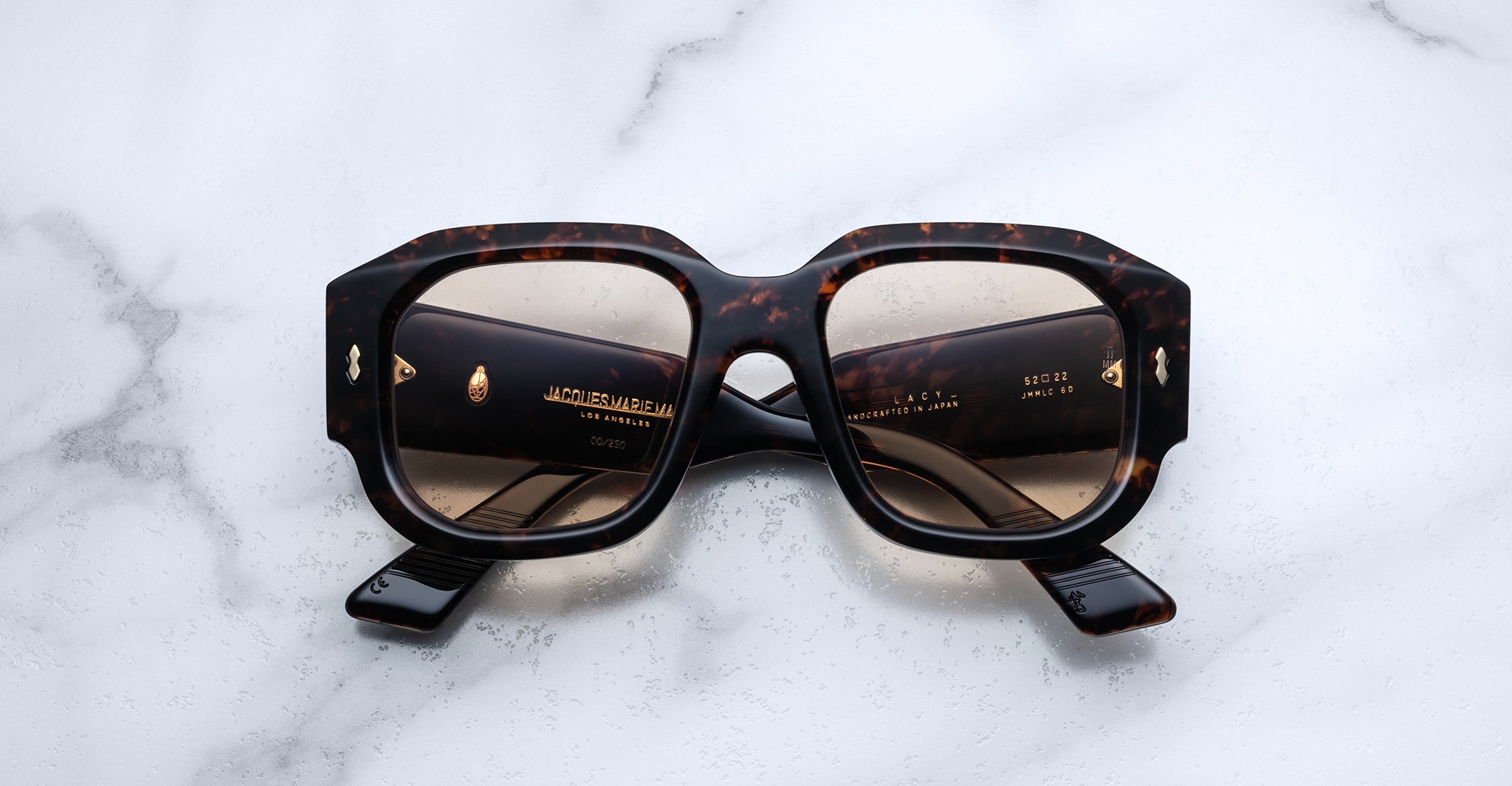 Jacques Marie Mage’s Lacy is from the Women’s Series. Made from the finest Japanese acetate, it is an oversized, rectangular, and feminine silhouette sunglass with wide temples and sharp volumes. The wirecore is made from precious metals. It comes in both sunglass and optical versions.