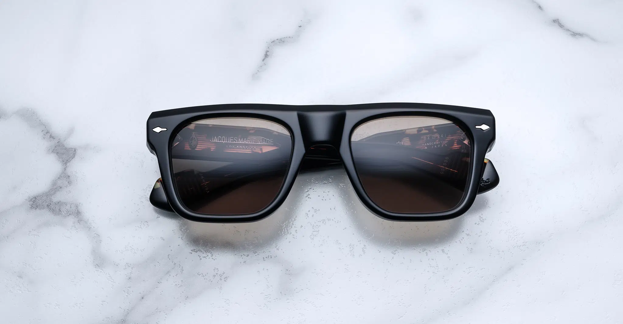 A new addition to Jacques Marie Mage’s Kyosho Series, the Mishima sunglass is a medium-sized rectangular frame made from acetate, featuring JMM’s signature arrowheads on the front of the frame and temple wirecore made from precious metals.