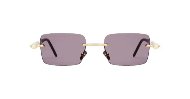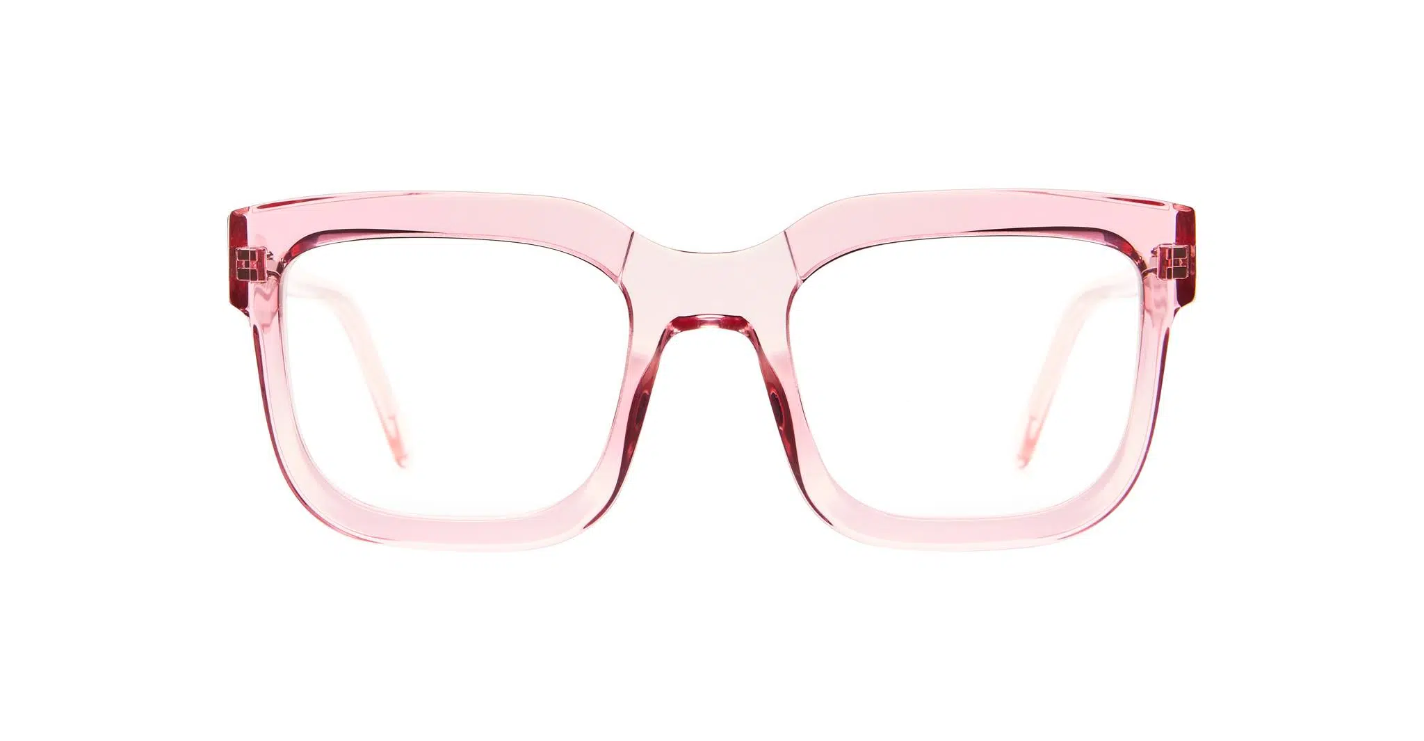 Kubouram’s K4 glasses made from Mazzuchelli acetate is a bold rectangular frame with swooping lines and a wide nose bridge with geometric detail. The straight temples have sloping curves and curved ends, which are adjustable due to the titanium wirecore.