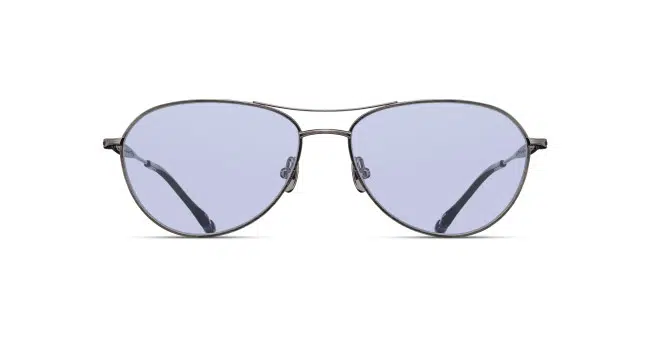 Matsuda’s 10189H-I is a standout optical frame from the Heritage Collection, crafted in titanium and finished with precious metals. It has been elevated with a distinctive acetate insert. Hand-lacquered temples highlight an Art Deco motif.
