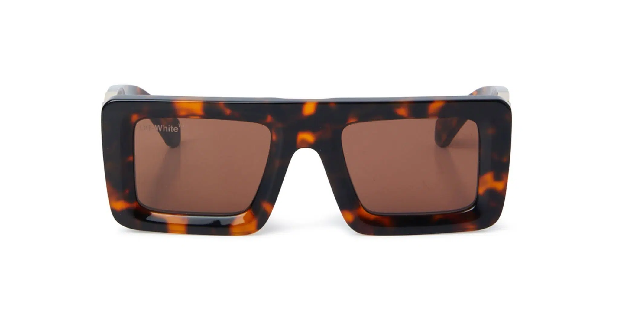 Off-White Leonardo sunglasses are the pinnacle of the collection in terms of luxury design and craftsmanship. They look like a sculpture carved out of a single block of acetate. In contrast to the bold square shapes, the edges have been expertly polished to produce rounded corners. The wide temples are embellished with Off-White’s arrows and ivy leaf emblem made from jewelry-grade metal adding to the look of high fashion.