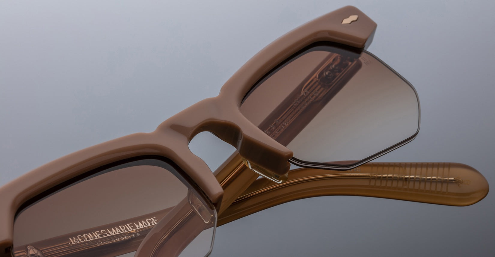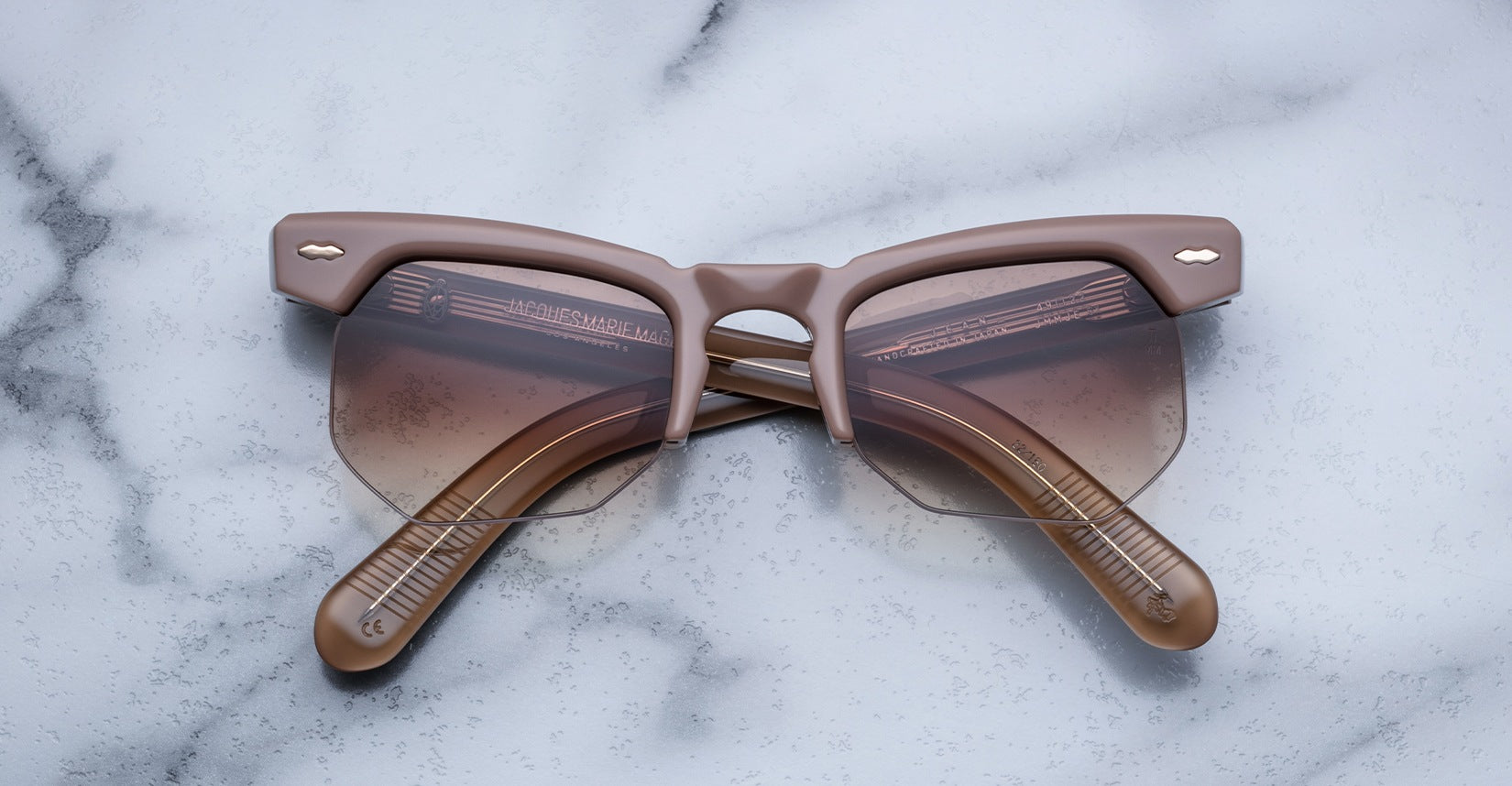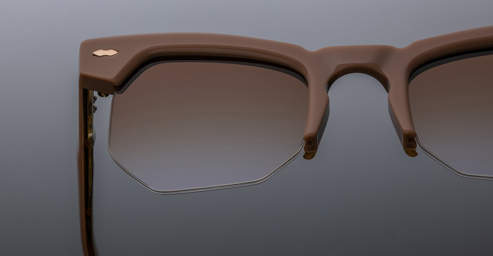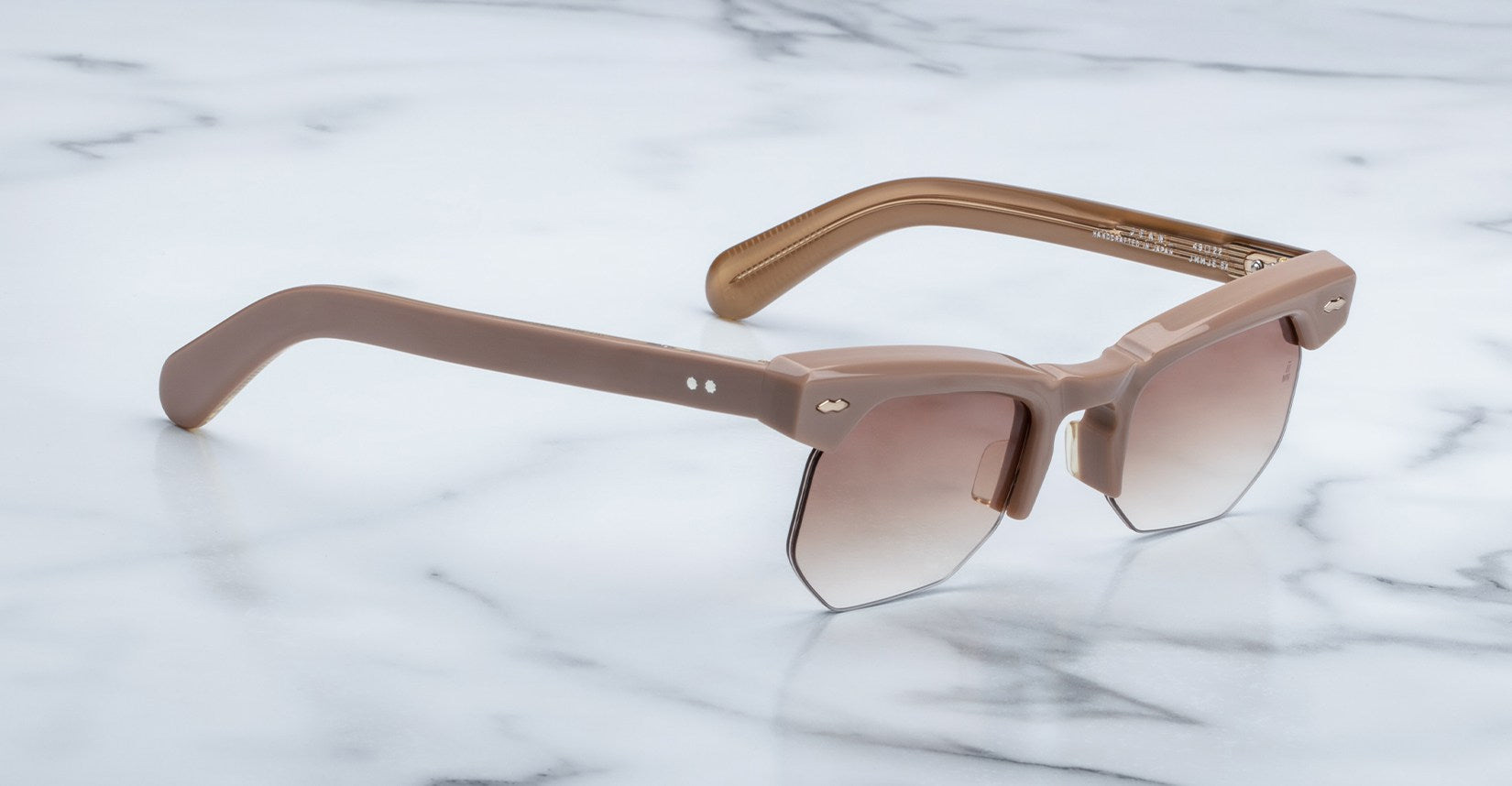 They have an elevated ‘40s lens shape with distinctive semi-rimless construction and exaggerated brow lines that give the Jean a sultry allure.