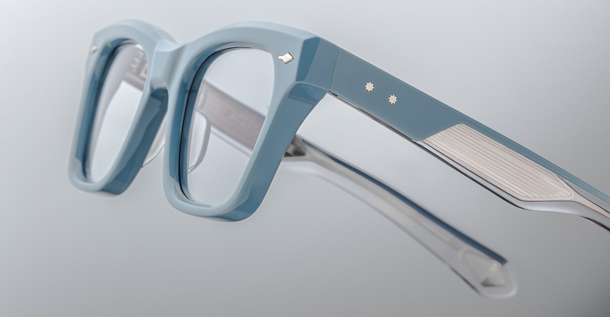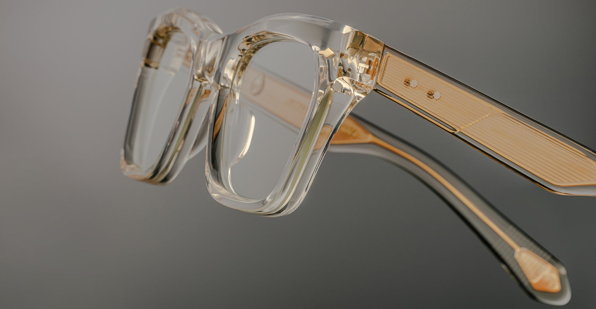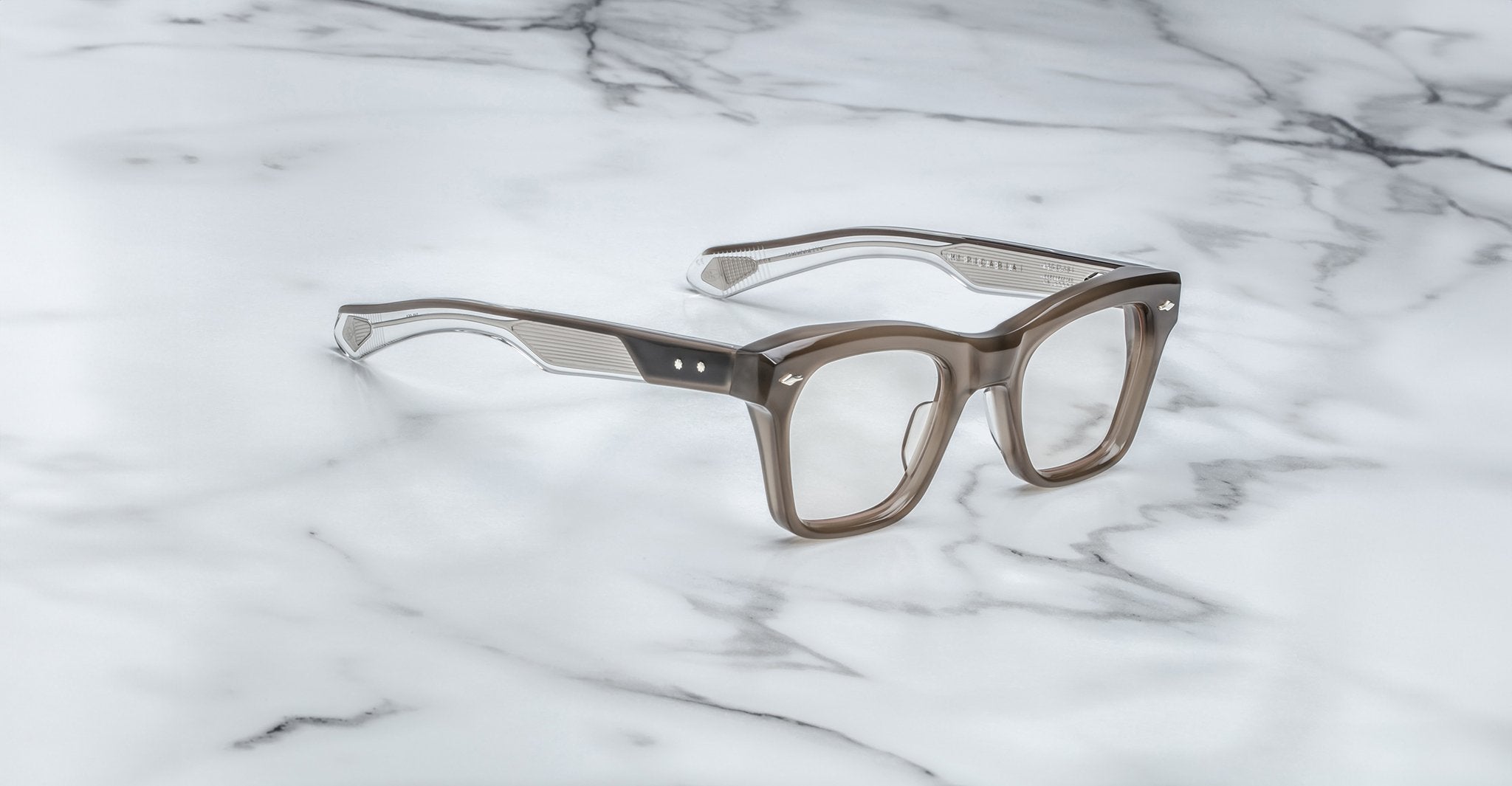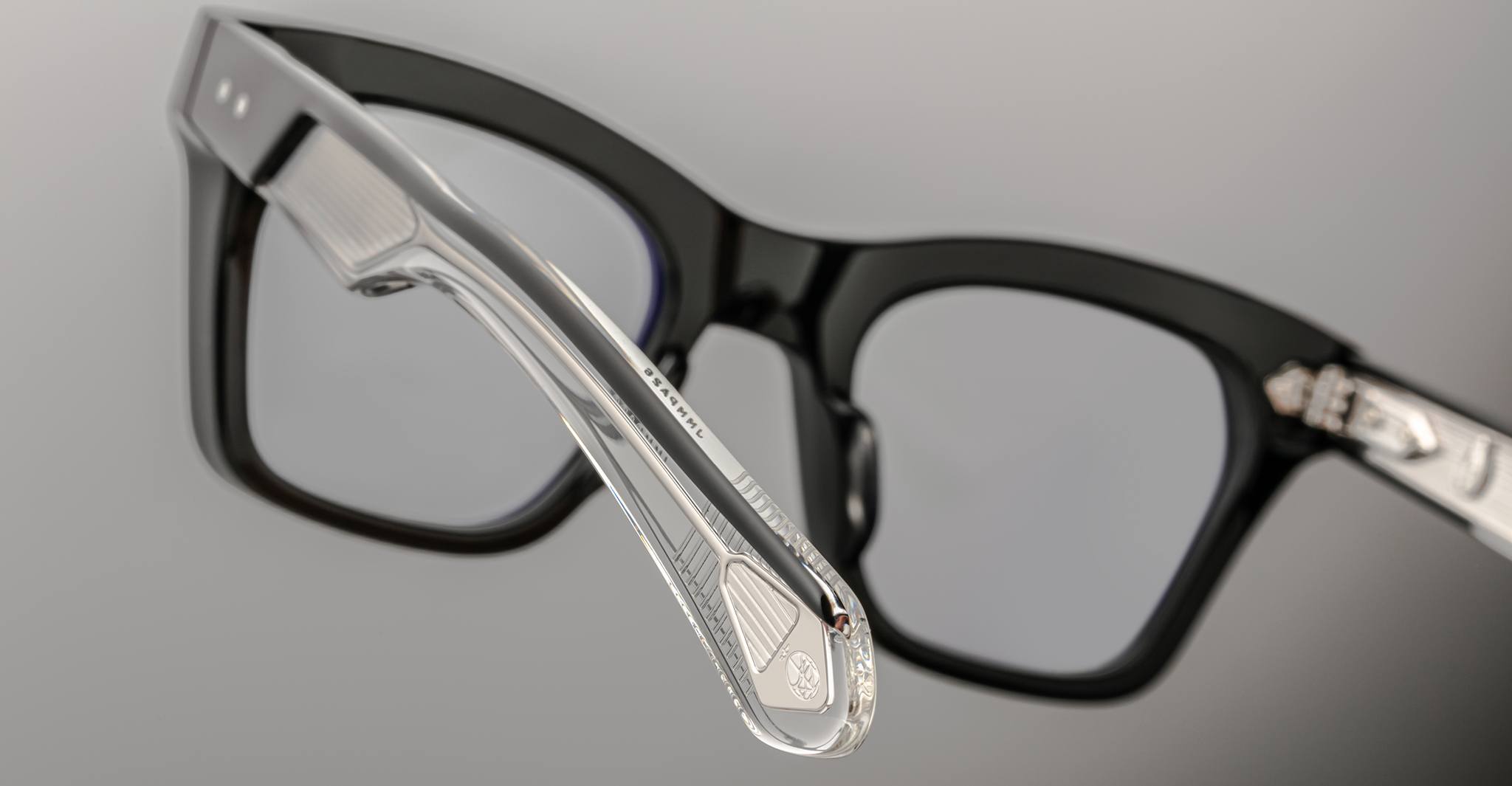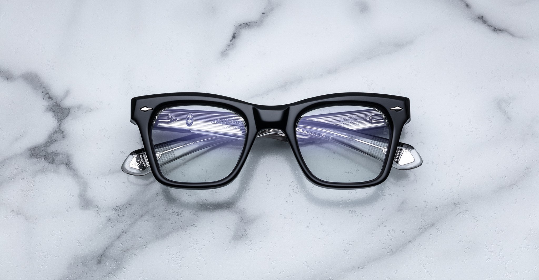 Jacques Marie Mage’s Picibia optical frames are eye-catching ‘50s-inspired square Wellington-shaped optical glasses, featuring sculptural volume cute and exposed wirecore temples that showcase energetic hairline-engraved Art Deco details.