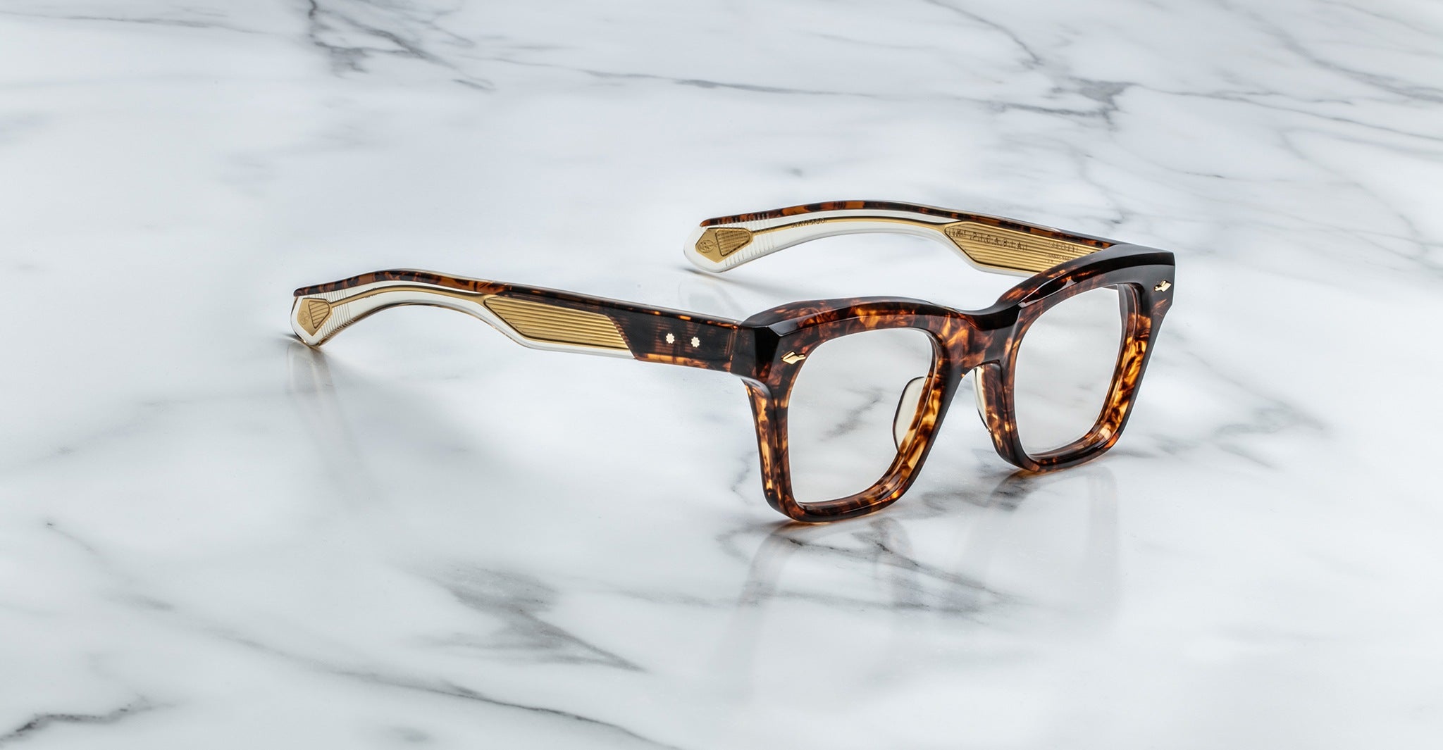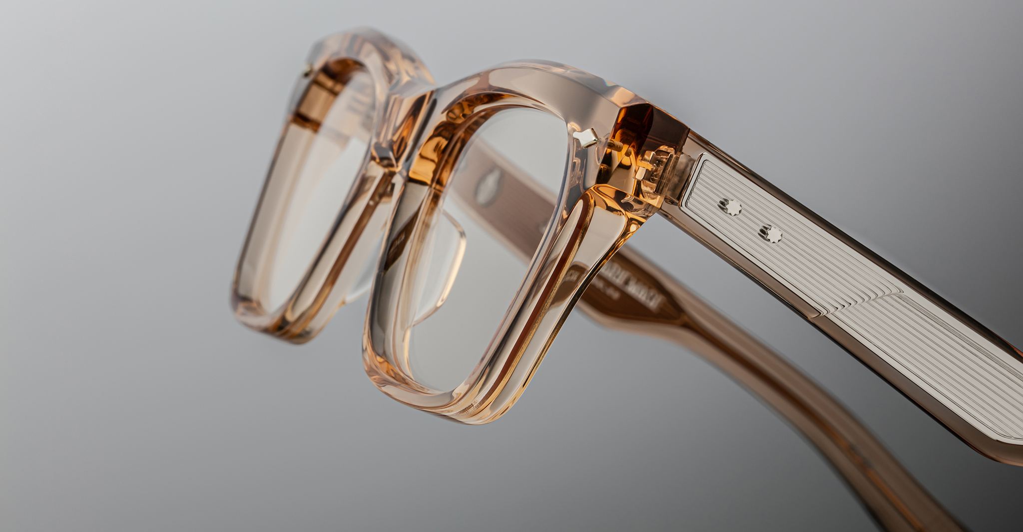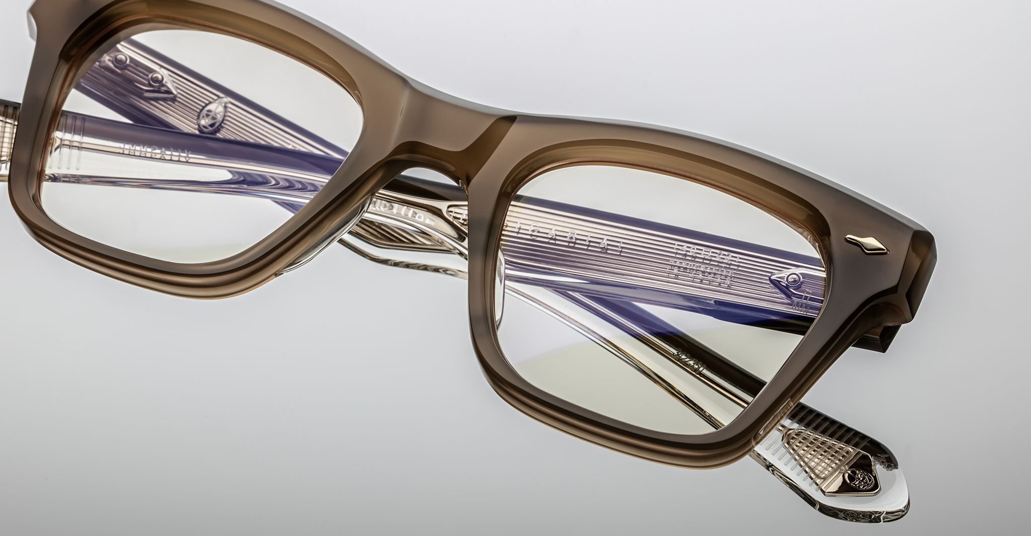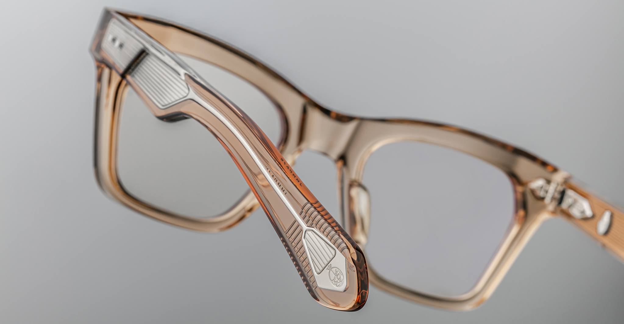 Jacques Marie Mage’s Picibia optical frames are eye-catching ‘50s-inspired square Wellington-shaped optical glasses, featuring sculptural volume cute and exposed wirecore temples that showcase energetic hairline-engraved Art Deco details.