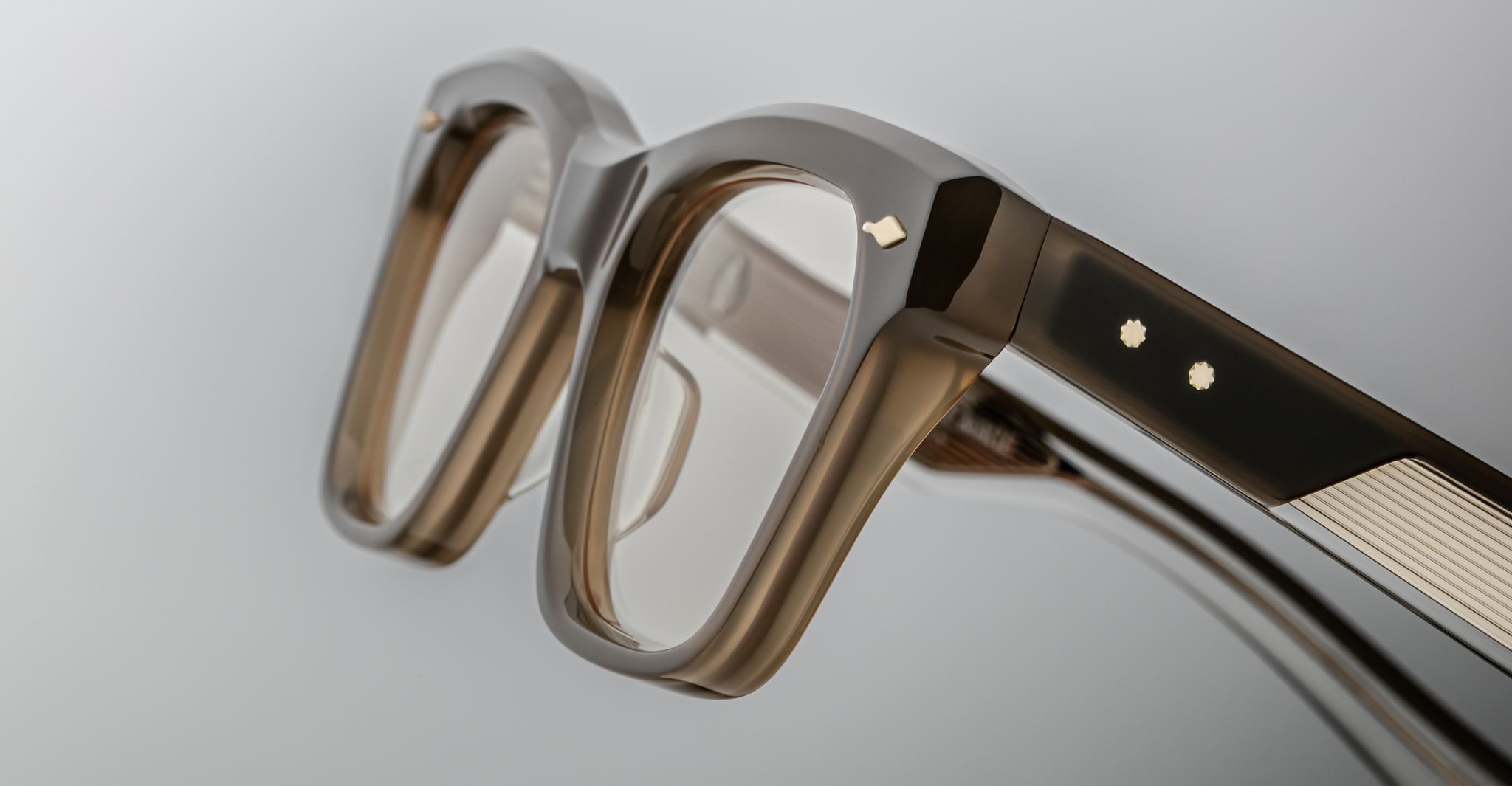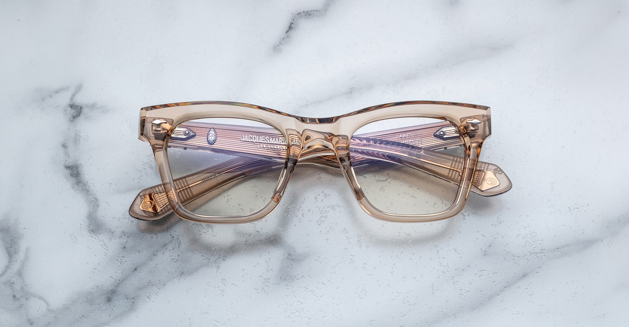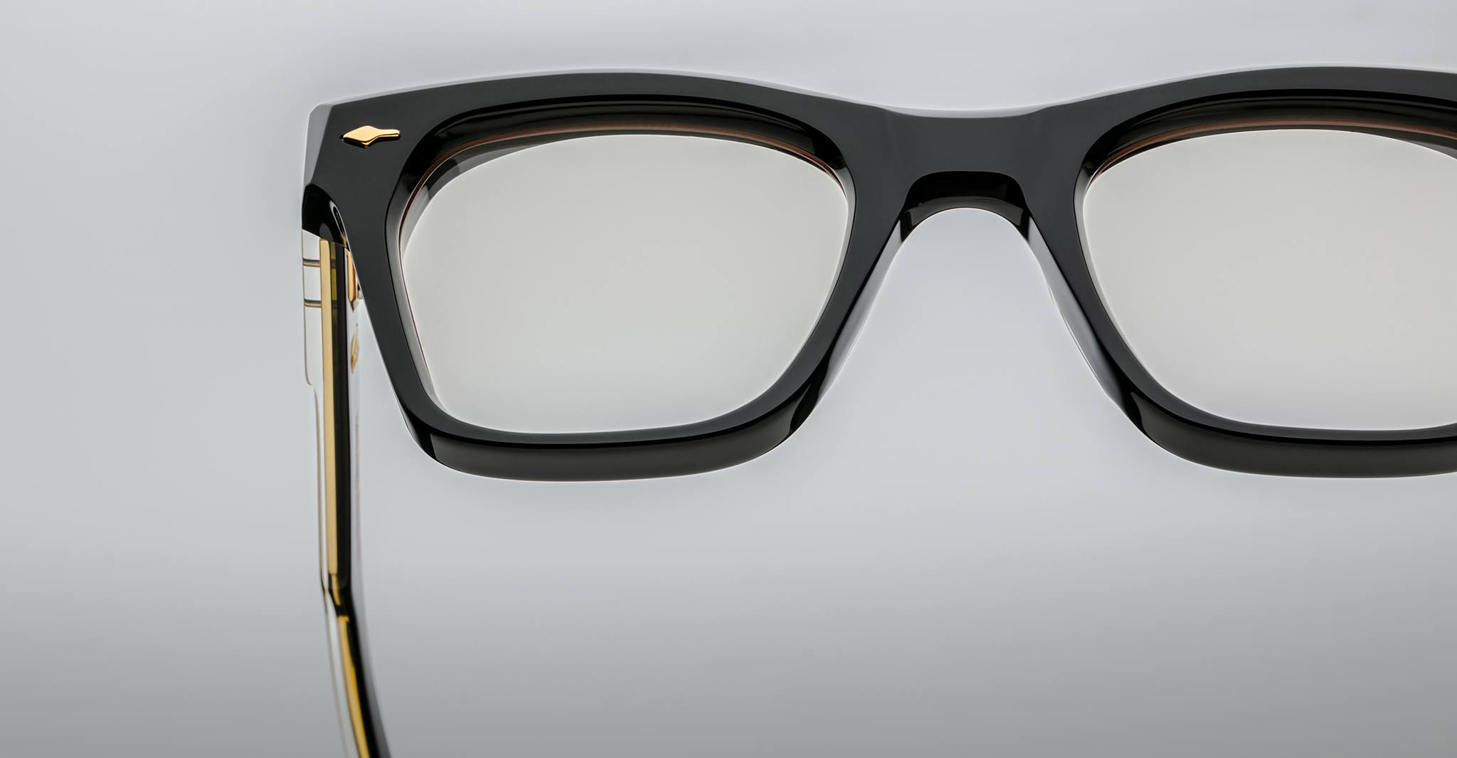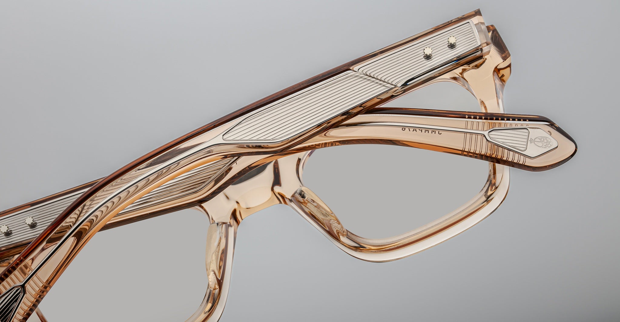 Jacques Marie Mage’s Picibia optical frames are eye-catching ‘50s-inspired square Wellington-shaped optical glasses, featuring sculptural volume cute and exposed wirecore temples that showcase energetic hairline-engraved Art Deco details.