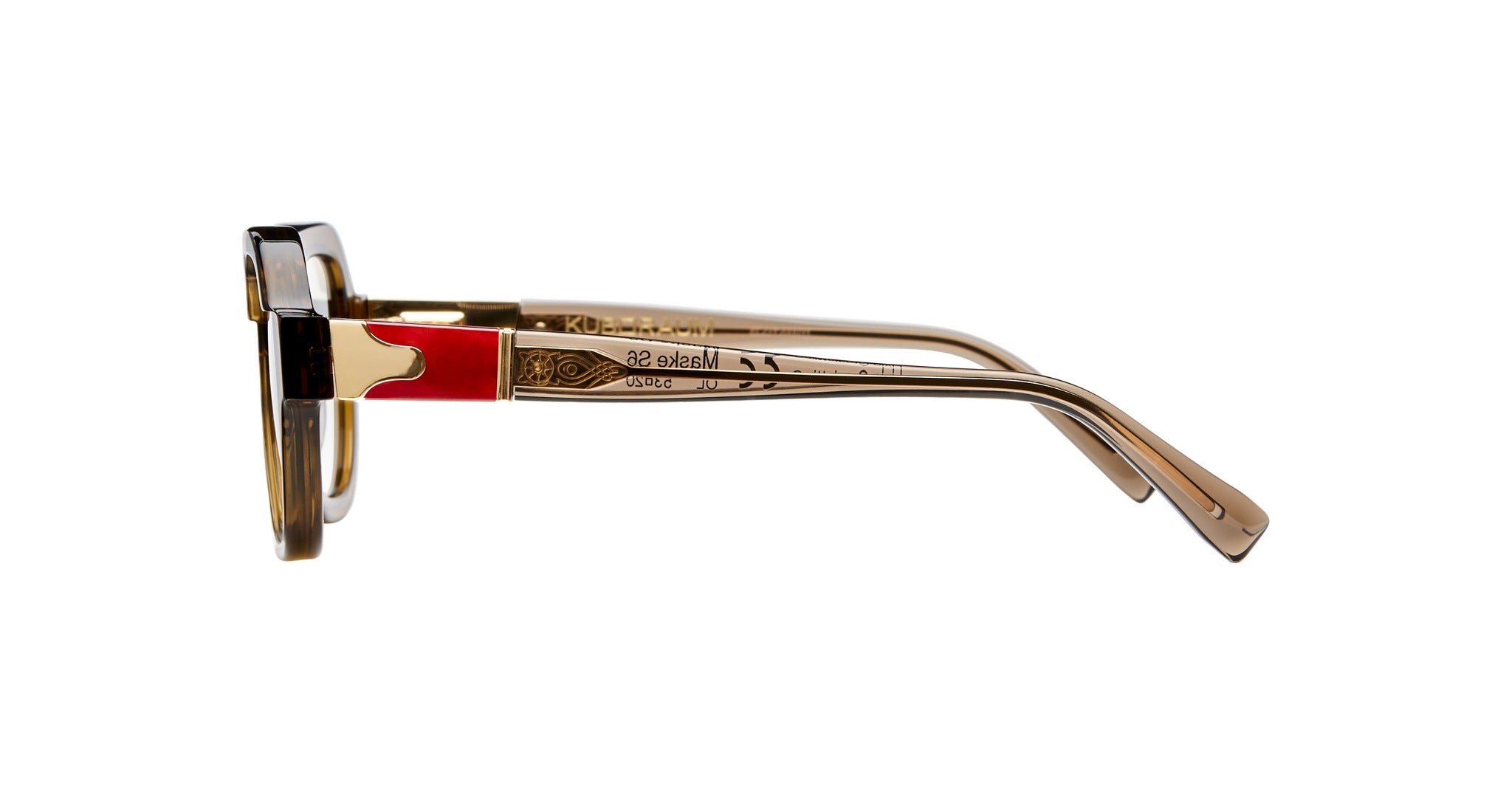 Kuboraum S6 is the first aviator-style acetate frame within the S-Series. Its signature feature lies in the temples, where colorful acetates blend with handcrafted metals for ornamental detail. The elements of acetate and metals are the exact materials used in the manufacturing of calligraphy pens.