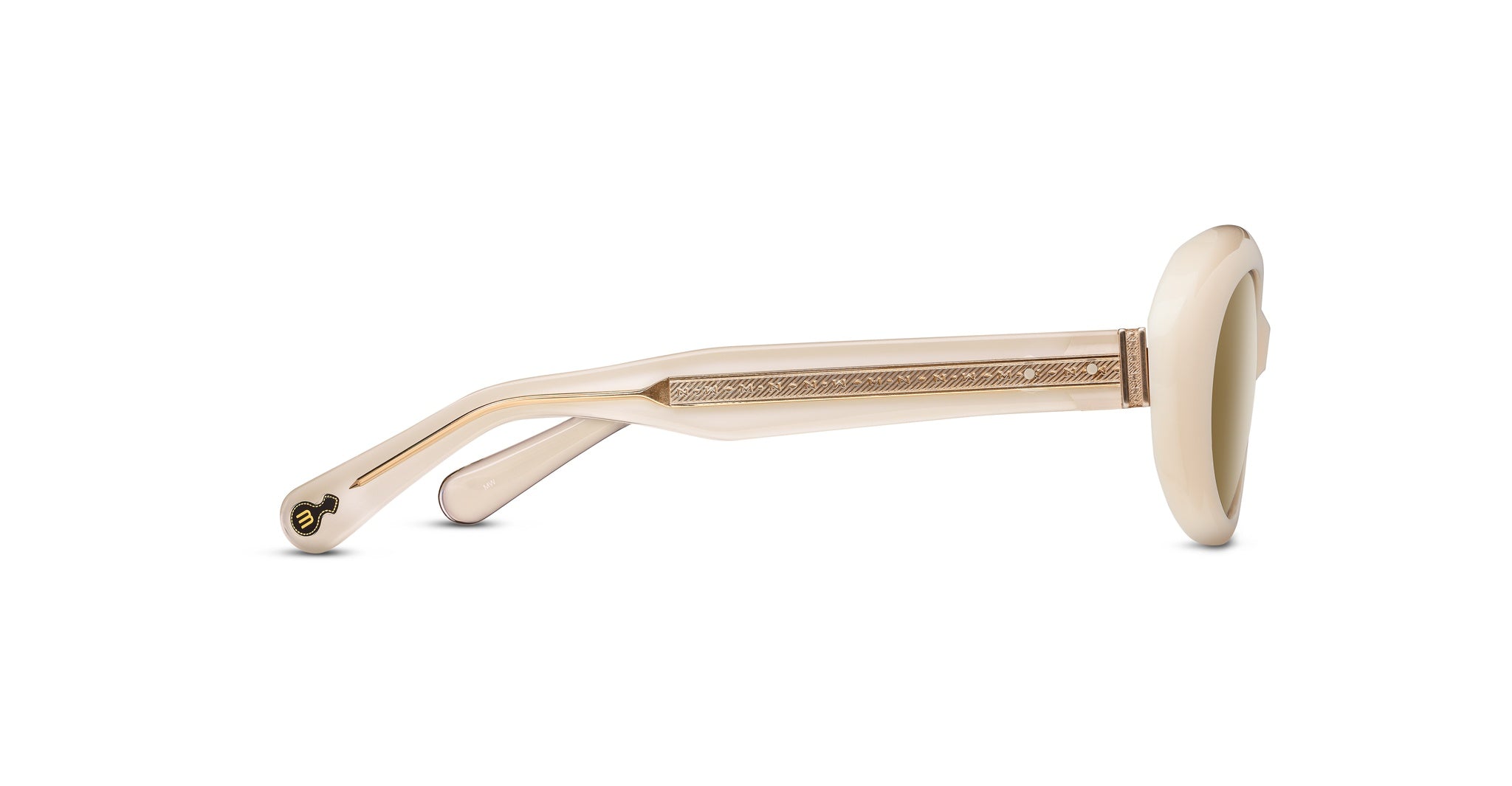 The M1034 by Matsuda is inspired by the bold and expressive sunglasses worn in Paris in the late 50s and early 60’s, the M1034 is an oval silhouette that stands apart with hand-sculpted Japanese acetate, a custom riveted hinge, and temple core engraved with the signature M+N motif.