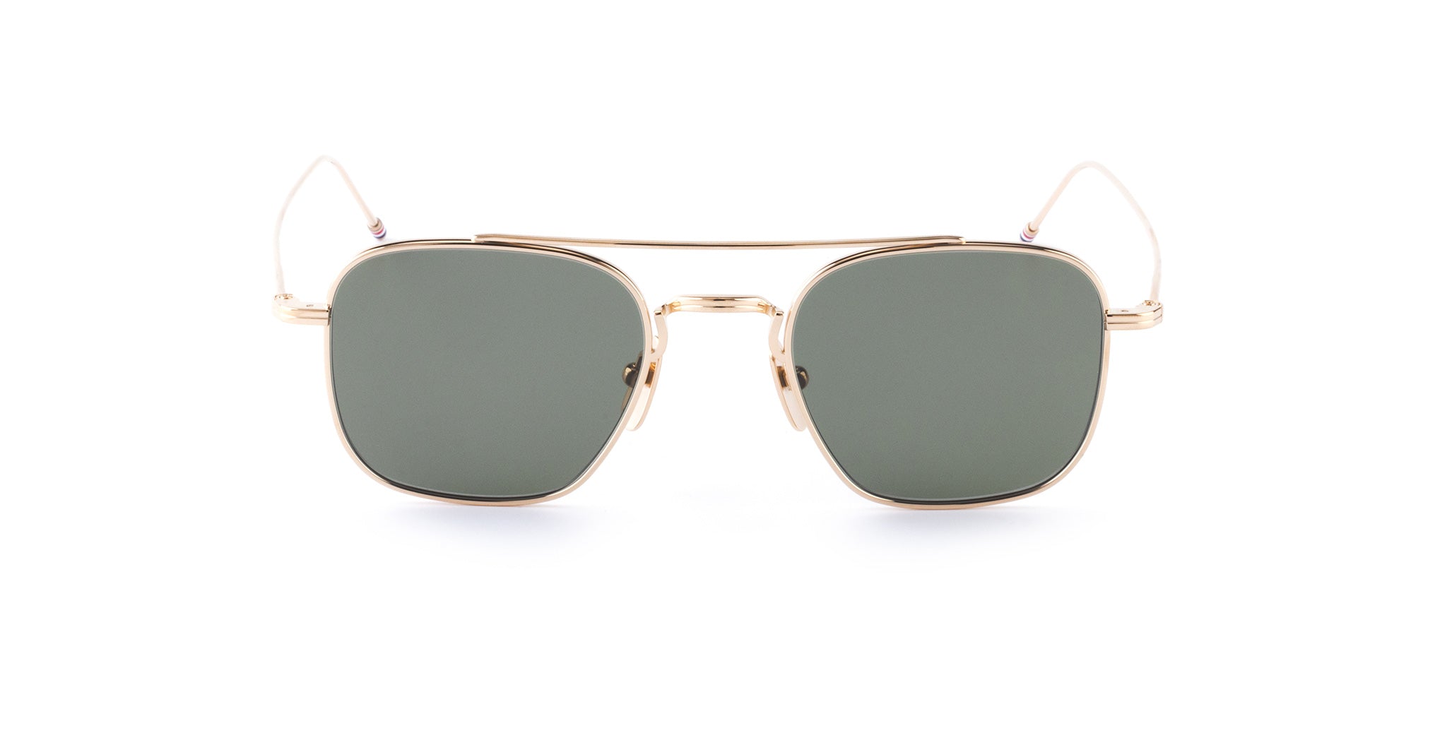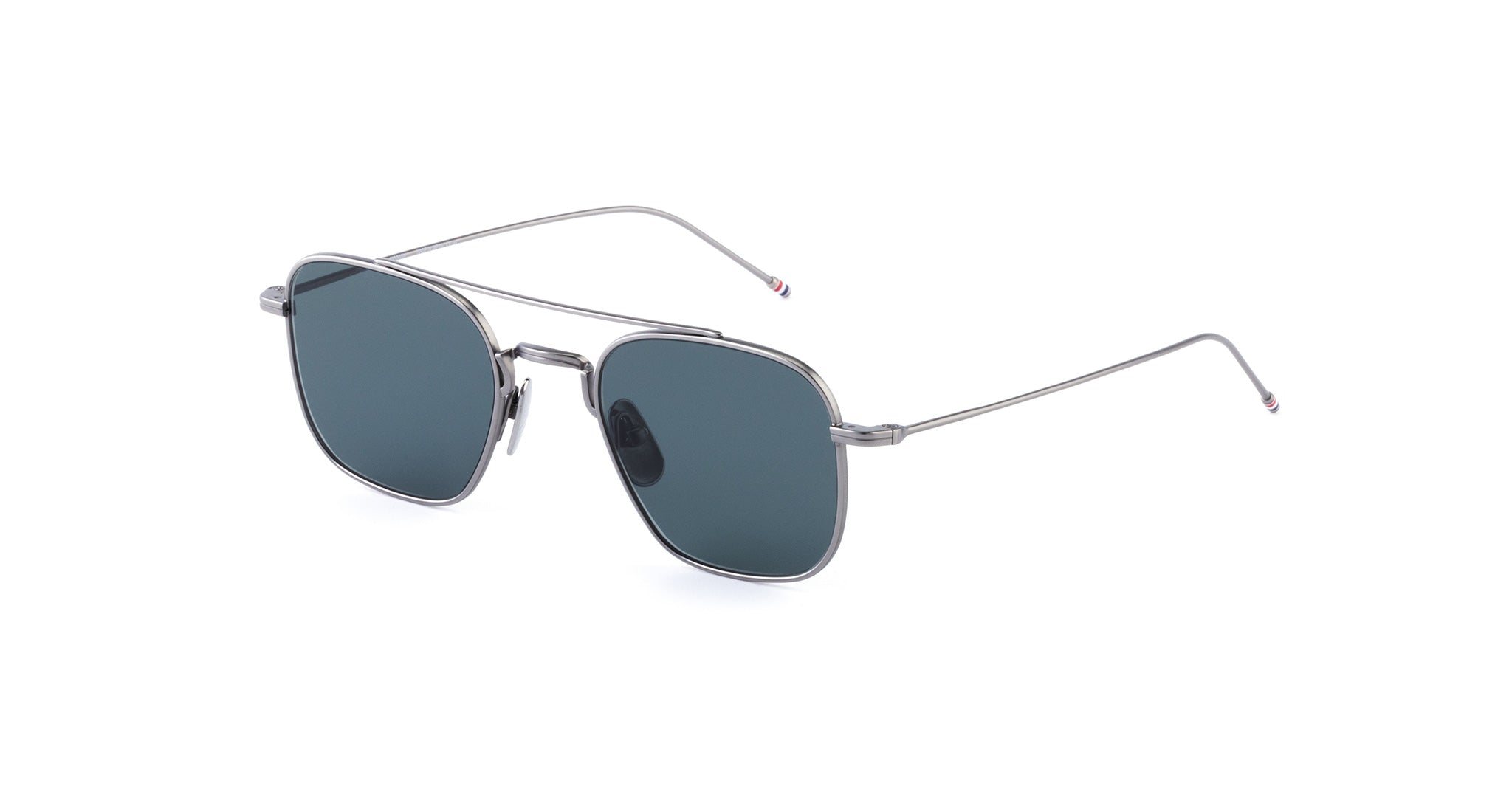 The Thom Browne 907 is a modern take on the classic aviator shape. Made in Japan from lightweight titanium, these sunglasses feel comfortable while offering a clean, structured look. The squared-aviator silhouette adds a fresh, sharp edge to a familiar style. Anti-reflective lenses reduce glare, and signature 4-bar details with tricolor temple tips give the frames a recognizable Thom Browne finish. Stylish, easy to wear, and built with care, the 907 delivers simple, refined luxury.